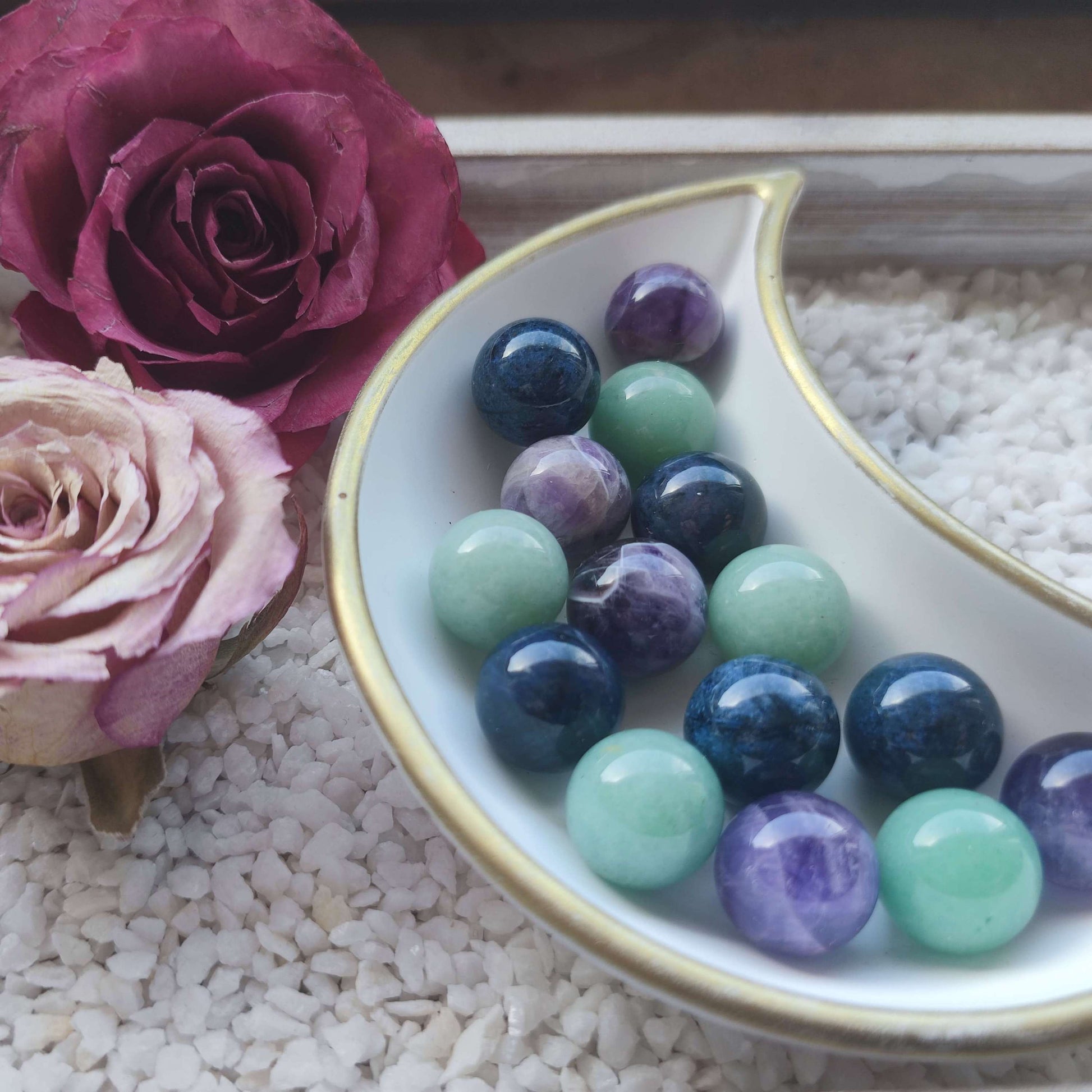 Edelsteine/ Mineralien sind Naturprodukte, variieren in Farbe und Erscheinung und haben oft natürlich vorkommende Einschlüsse, Risse oder Löcher/Drusen. Dies ist kein Reklamationsgrund.