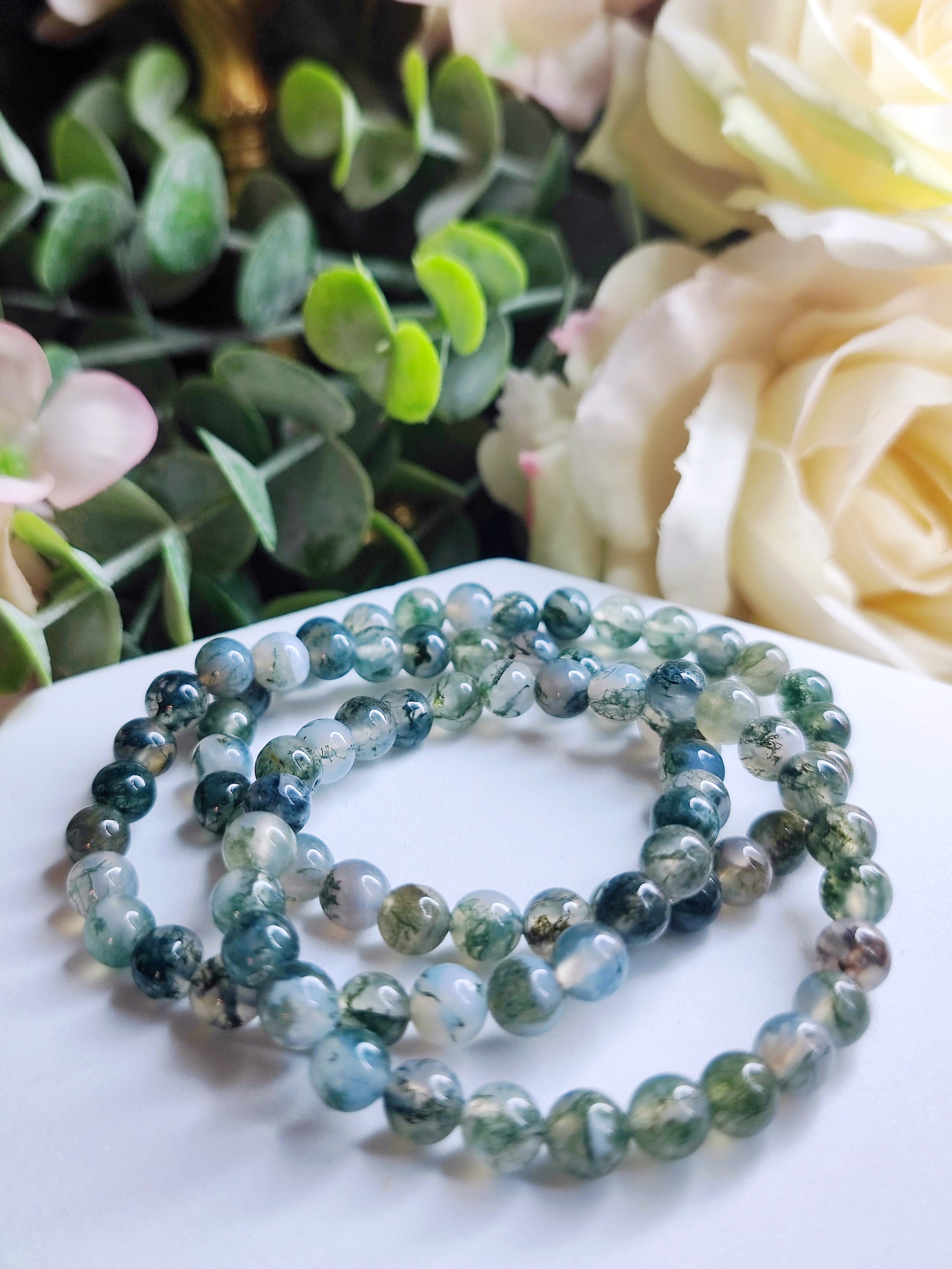 Elastisches Moosachat Armband mit 6mm-Perlen