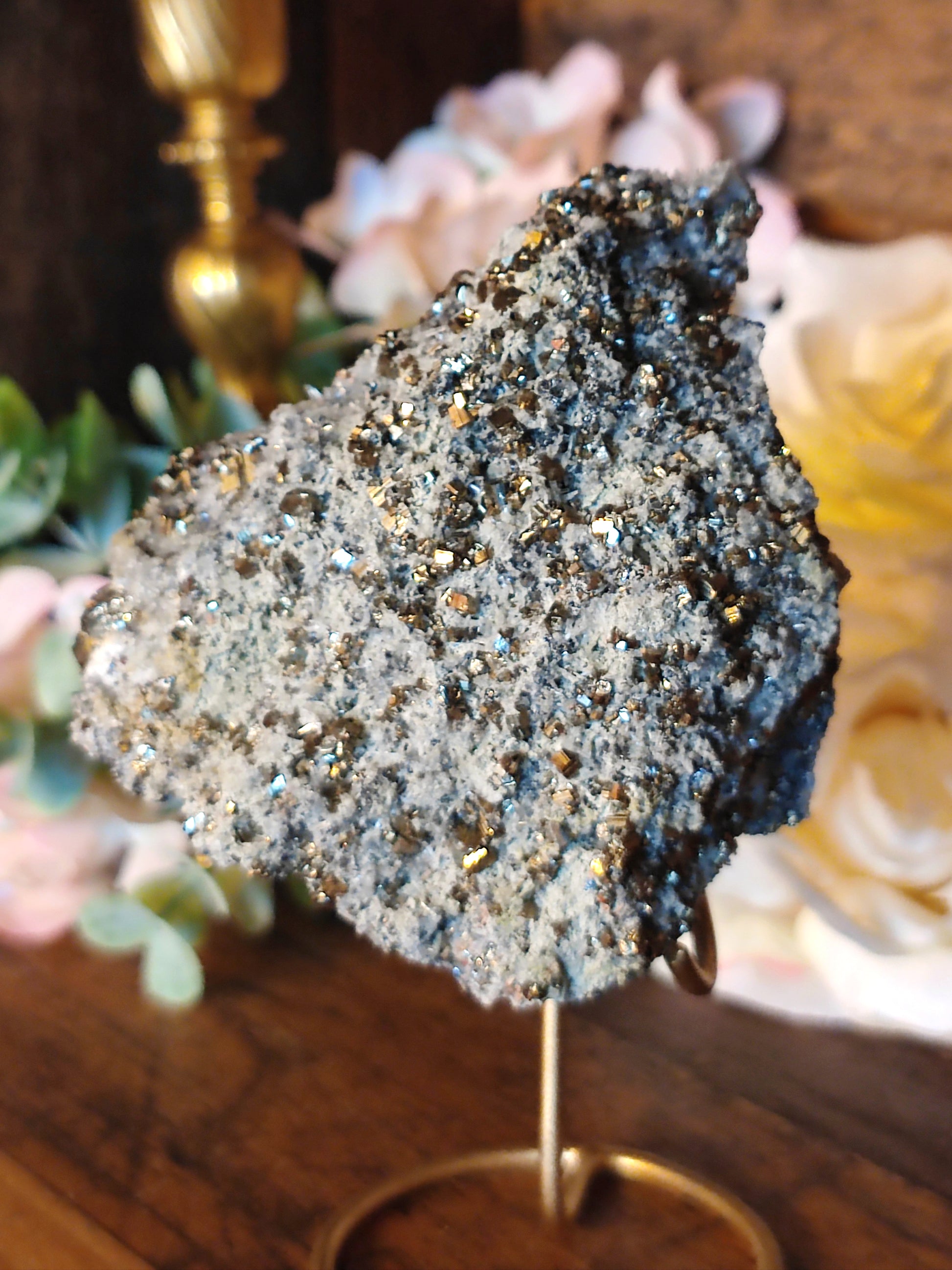 Traumhafte Stufe mit feinsten Quarznadeln und unzähligen Pyritwürfelchen