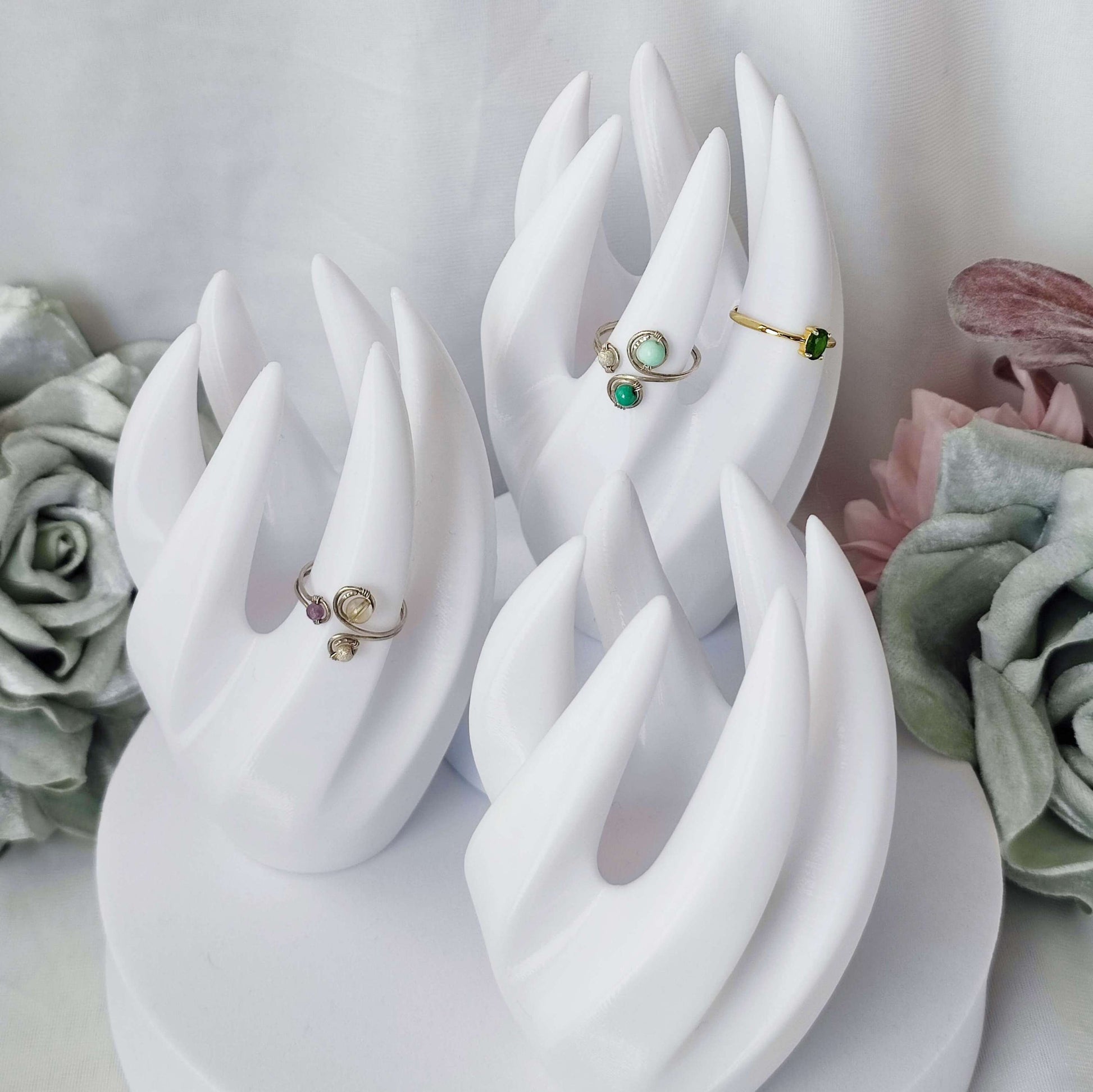 Stylischer Ringhalter in weiß glänzend aus PETG Filament.
